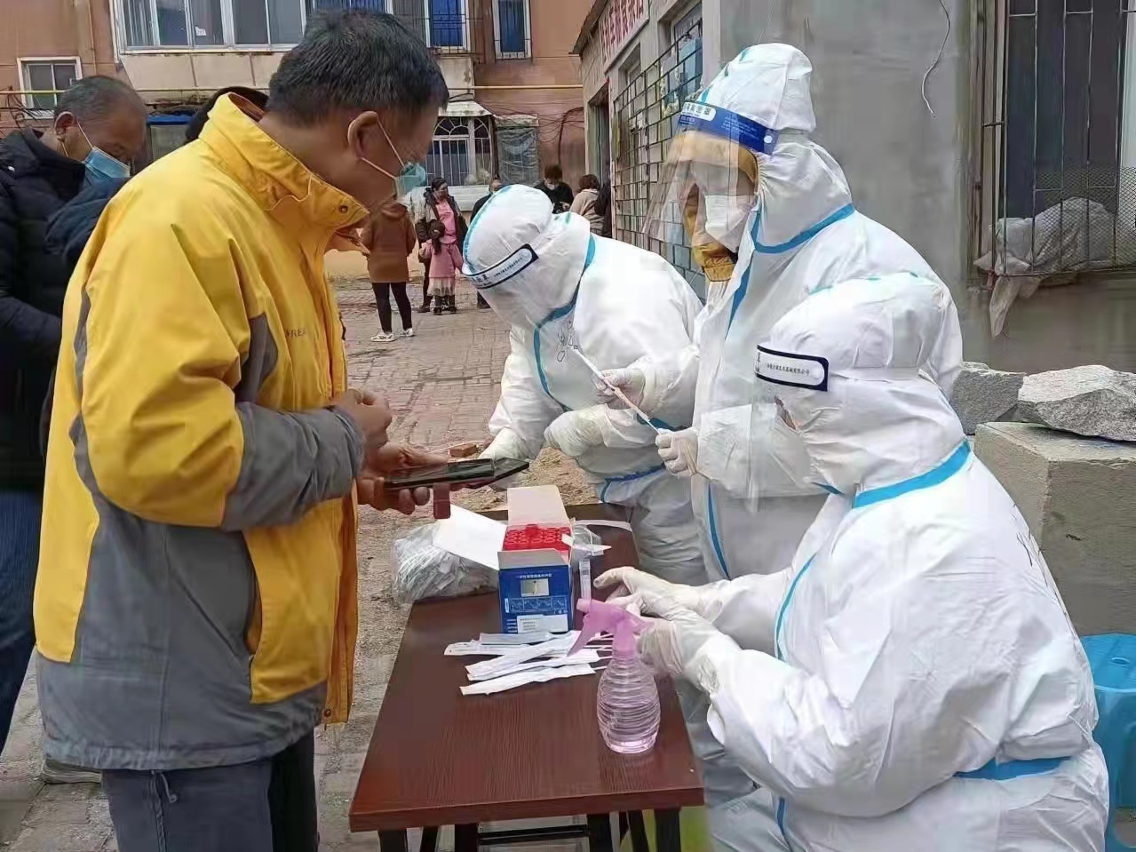 在集團(tuán)黨委的號(hào)召下,西市營(yíng)業(yè)分公司黨支部居家辦公的黨員們紛紛加入到志愿者的行列,化身“大白”,積極協(xié)助各小區(qū)卡點(diǎn)站崗、核酸檢測(cè)、疫情流調(diào)、逐戶(hù)核酸排查、居民生活物資保障、秩序維護(hù)等志愿服務(wù)中,堅(jiān)決守住疫情防控第一道關(guān)口,把“堡壘”筑在疫情防控最前沿,讓黨旗飄揚(yáng)在一線、黨徽閃耀在一線。