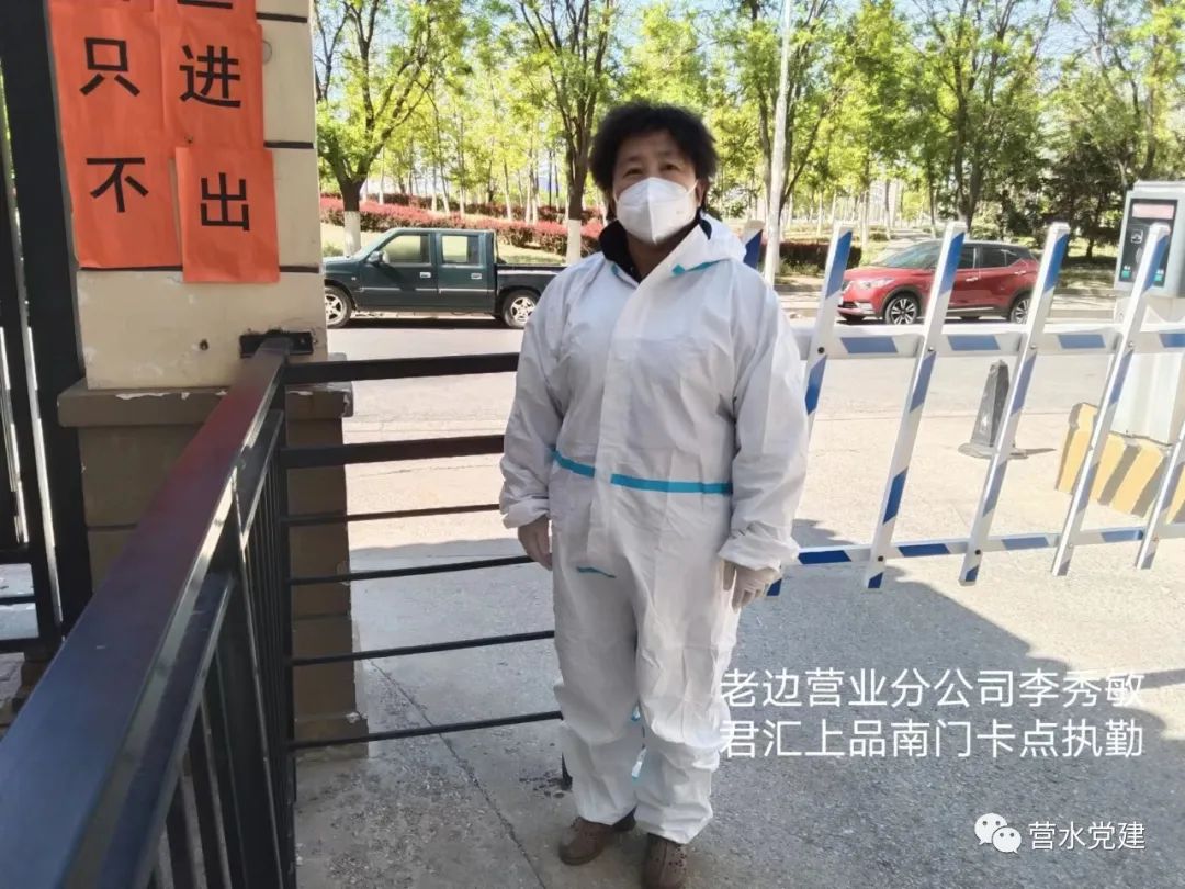 老邊營(yíng)業(yè)分公司的李秀敏同志是一名有著20年黨齡的老黨員,本輪疫情開(kāi)始,她克服腿傷尚未痊愈和丈夫已投身疫情防控一線家中無(wú)人照料等諸多困難,第一時(shí)間與智勝社區(qū)對(duì)接,主動(dòng)擔(dān)負(fù)起濱水人家小區(qū)等卡點(diǎn)的執(zhí)勤任務(wù)。每天4個(gè)多小時(shí)的站崗執(zhí)勤,對(duì)常人來(lái)說(shuō)尚不輕松,對(duì)于腿部有傷的她來(lái)說(shuō)更是十分吃力。每天執(zhí)勤歸來(lái),身心俱疲的她還要及時(shí)統(tǒng)計(jì)報(bào)送黨員參與志愿服務(wù)情況和居家隔離黨員實(shí)際情況,常常是一忙就忙到深夜。