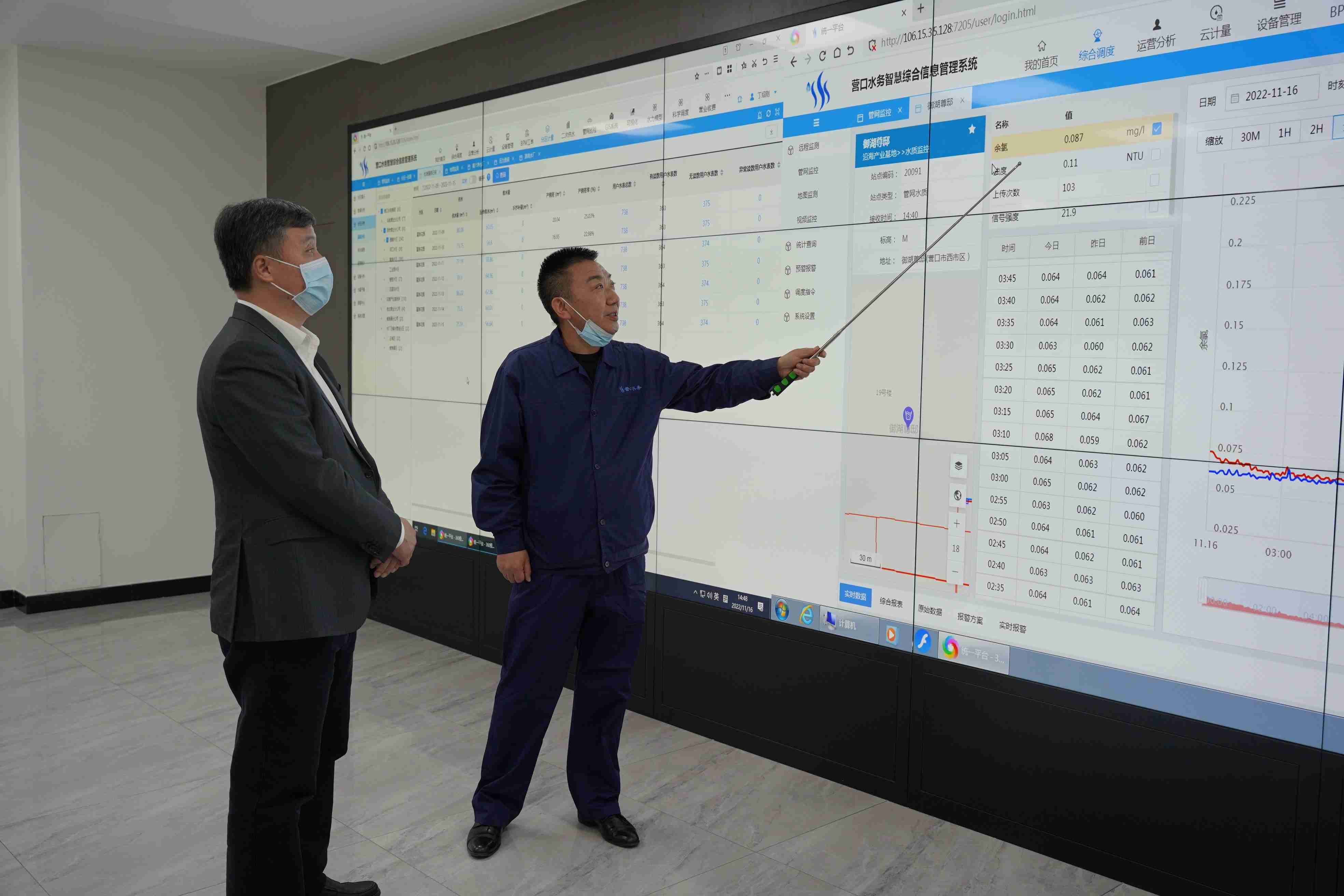 姚華明對智慧水務(wù)平臺的建設(shè)給予充分肯定,并詳細(xì)詢問了水源水廠、日供水能力、供水應(yīng)急保障及企業(yè)經(jīng)營情況,他指出,水務(wù)集團(tuán)基礎(chǔ)好、底子硬,在智慧水務(wù)的創(chuàng)新及研發(fā)方面始終不遺余力,智慧水務(wù)系統(tǒng)將對未來供水管網(wǎng)系統(tǒng)大數(shù)據(jù)分析及管網(wǎng)現(xiàn)代化管理提供更精準(zhǔn)的信息,為企業(yè)精細(xì)化管理提供參考依據(jù),相信水務(wù)集團(tuán)將為城市發(fā)展提供強(qiáng)大供水支撐。同時對今后工作提出三點要求:一要全力做好供水安全保障工作,確保水量足、水壓穩(wěn)、水質(zhì)優(yōu);二要全面提升服務(wù)效能,創(chuàng)新服務(wù)舉措,優(yōu)化服務(wù)方式,打造專業(yè)服務(wù)隊伍,不斷提升市民滿意度;三要全力推動數(shù)字化發(fā)展,加快智慧水務(wù)平臺建設(shè)進(jìn)程,真正用數(shù)字服務(wù)民生,全面打造現(xiàn)代化國有企業(yè)。