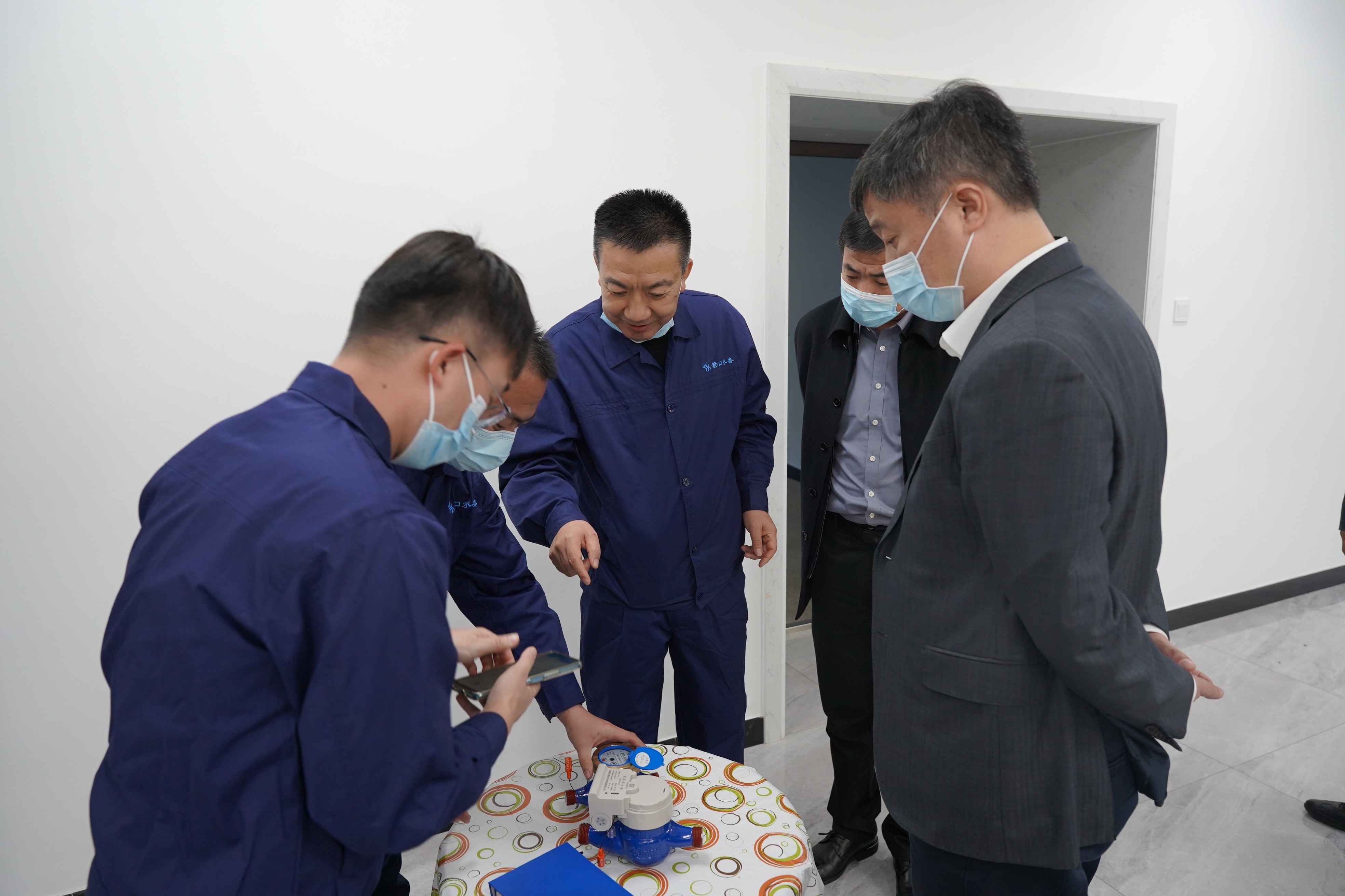 調(diào)研現(xiàn)場,水務(wù)集團(tuán)黨委書記、董事長張業(yè)維向市領(lǐng)導(dǎo)詳細(xì)匯報了智慧水務(wù)建設(shè)及使用情況,對水質(zhì)檢測點、漏損控制分區(qū)計量、手機(jī)抄表等進(jìn)行了講解,并現(xiàn)場用手機(jī)演示了“水務(wù)通”、“智水移動”兩款A(yù)PP的操作過程及實用功能。
