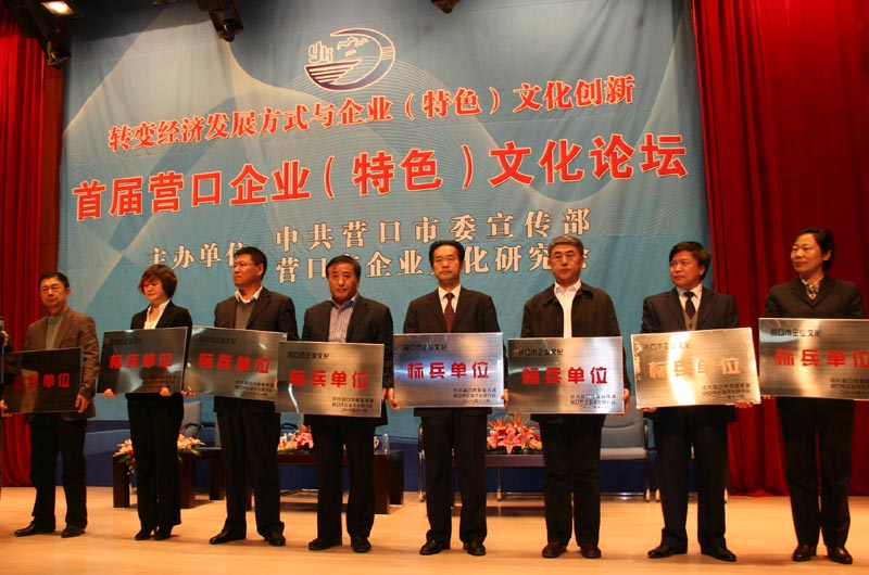 11月10日,我公司被命名為“營口市企業(yè)文化十佳標(biāo)兵單位”,在“營口市首屆企業(yè)文化論壇”上受到表彰,郭智敏總經(jīng)理代表我公司介紹了企業(yè)文化建設(shè)的經(jīng)驗和體會。